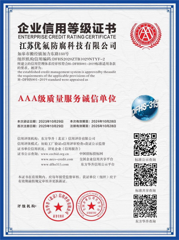 江蘇優(yōu)氟防腐科技有限公司位于美麗的長江明珠—如皋市,寧通高速、沿海高速、204國道貫穿如皋,交通發(fā)達(dá),物流便利。地處經(jīng)濟(jì)迅猛發(fā)展的長三角,瀕江臨海,與上海、蘇州、無錫隔江相望,交通便利,通揚(yáng)運(yùn)河、334省道、新長鐵路穿鎮(zhèn)而過,地理位置十分優(yōu)越。 公司有幾十名多年從事防腐噴涂內(nèi)襯經(jīng)驗(yàn)的技術(shù)研發(fā)人才,專注于解決大型化工設(shè)備和超大型化工設(shè)備的化學(xué)易腐蝕介質(zhì)的難題,大大提高容器的使用壽命,從而大大減少客戶的使用成本。 江蘇優(yōu)氟防腐科技有限公司專業(yè)致力于四氟防腐,四氟噴涂,襯四氟,襯PTFE,鋼襯四氟,內(nèi)襯四氟,(PTFE PFA PVDF)內(nèi)襯和(PFA FEP ETFE Halar-ECTFE ...